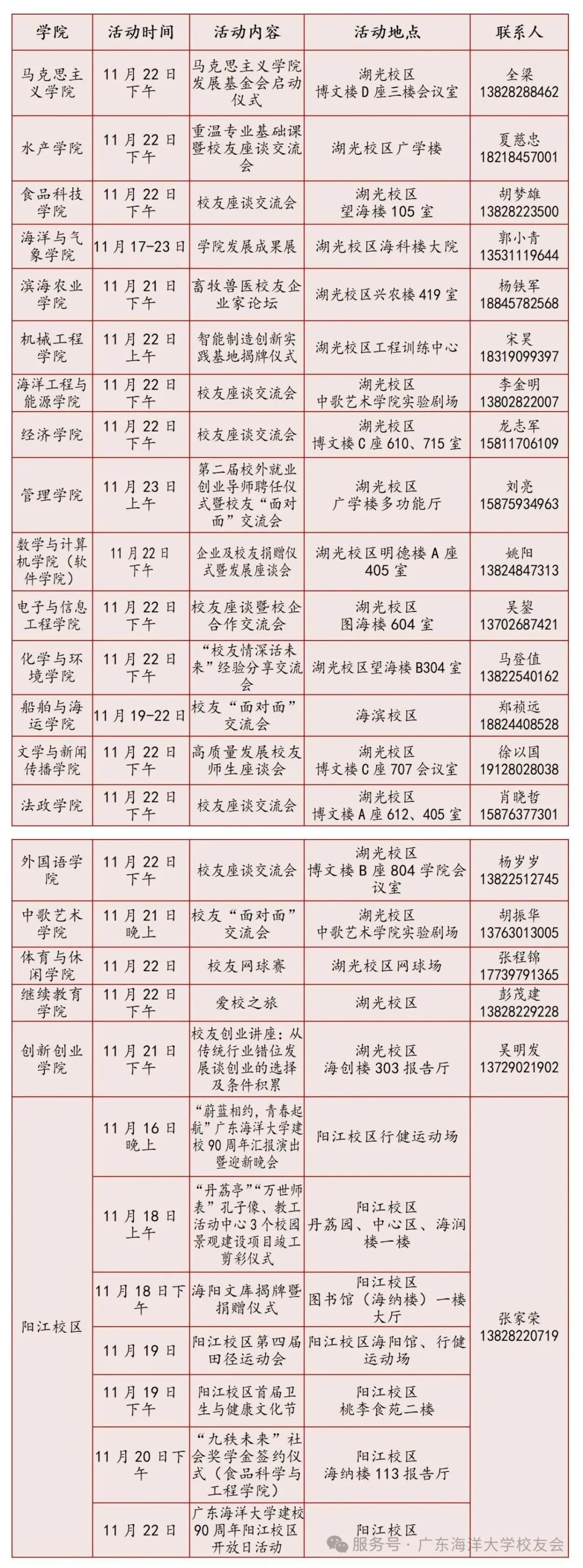更多活动详情、接待、交通、餐饮、住宿指引及校友卡申领请访问广东海洋大学校友会公众号推文