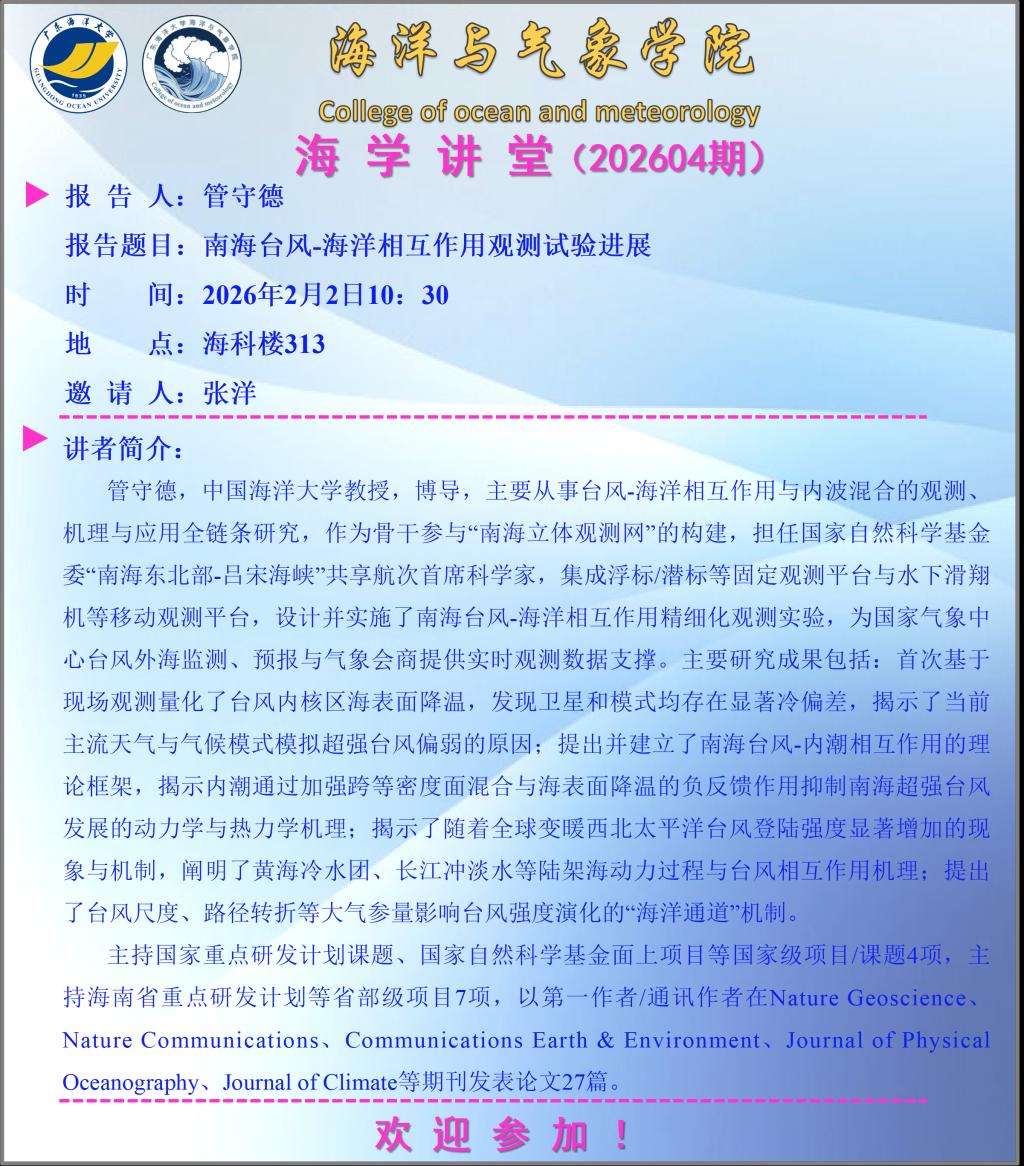 海洋与气象学院“海学讲堂”(202604期)