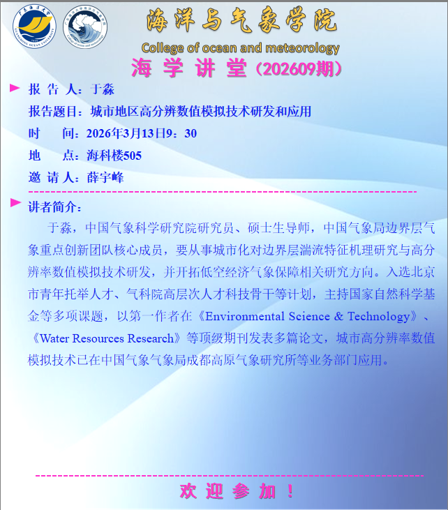 海洋与气象学院“海学讲堂”(202610期)