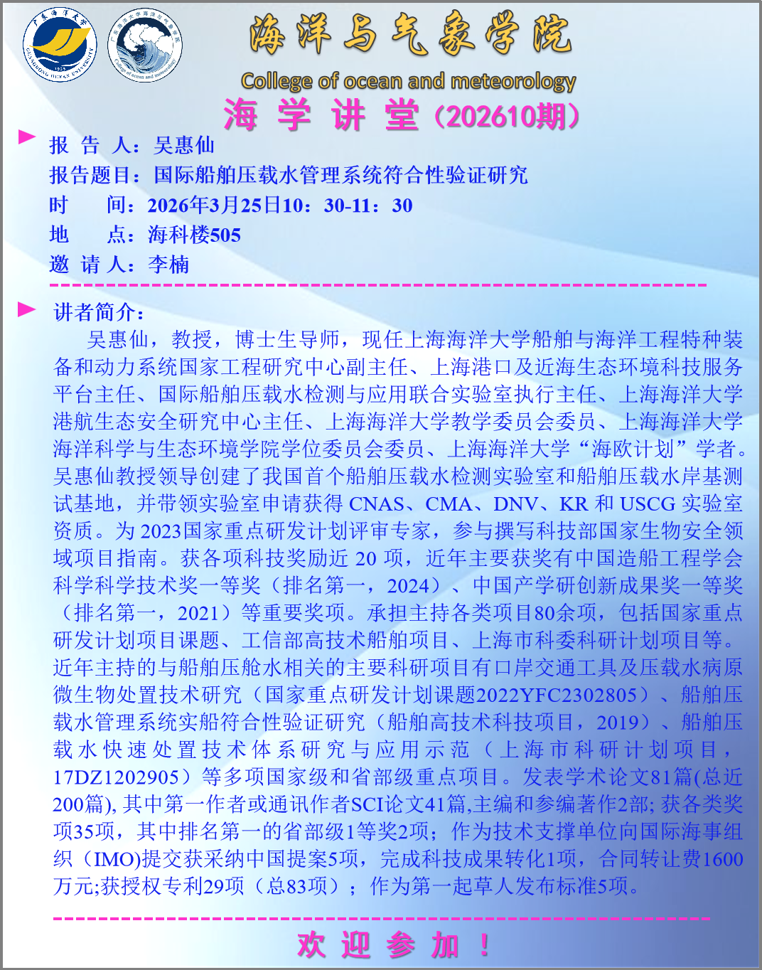 海洋与气象学院“海学讲堂”(202610期)