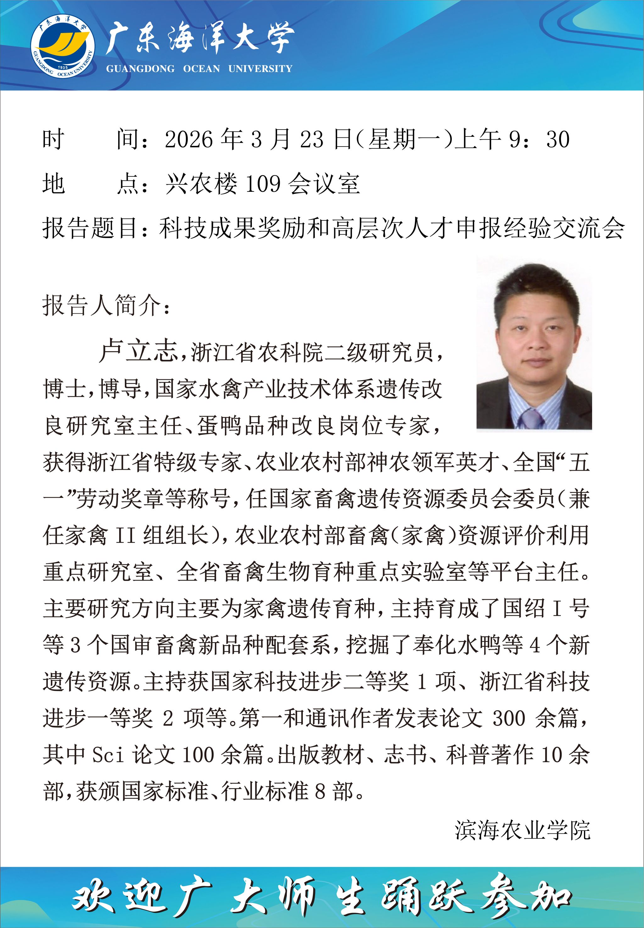 海洋与气象学院“海学讲堂”(202610期)